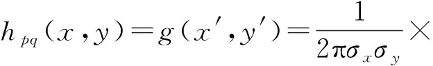 式中:p、q分别为尺度膨胀系数和方向旋转次数,p=1,2,…,S,S为最大尺寸数,q=1,2,…,L,L为方向旋转的总次数;g(x′,y′)为以g(x,y)为母函数,经过尺度膨胀和方向旋转所得的函数,x′和y′为旋转后的坐标;θq为滤波器的方向角度,![]()