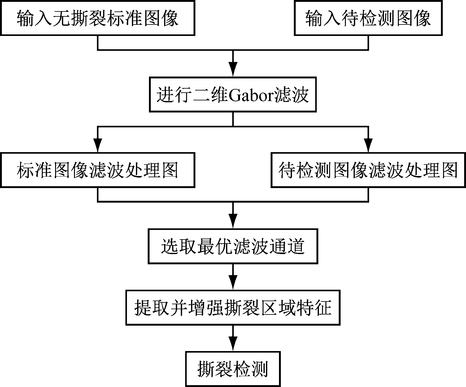 基于二维Gabor滤波器的胶带撕裂检测方法流程如图1所示。