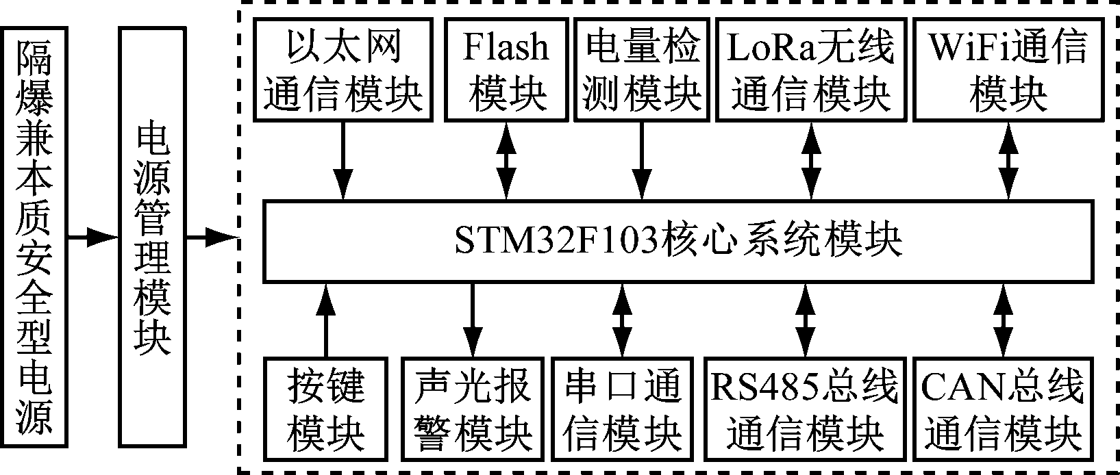 LoRa智能网关主要包括单片机STM32F103核心系统模块、通信模块和电源管理模块,如图8所示。