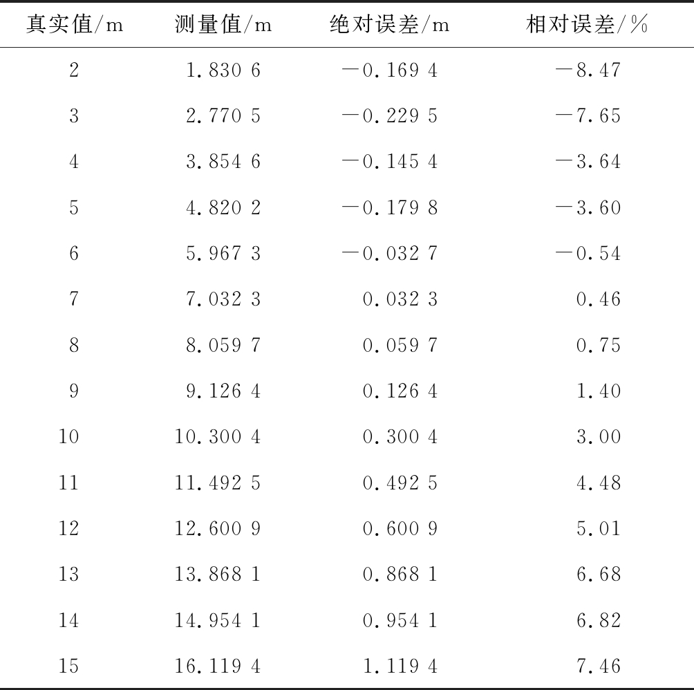 根据监测到的火源在左视图中像素坐标系中的坐标,输出该坐标的深度值作为火源的距离值。改变火焰距双目摄像机距离,试验数据见表1。