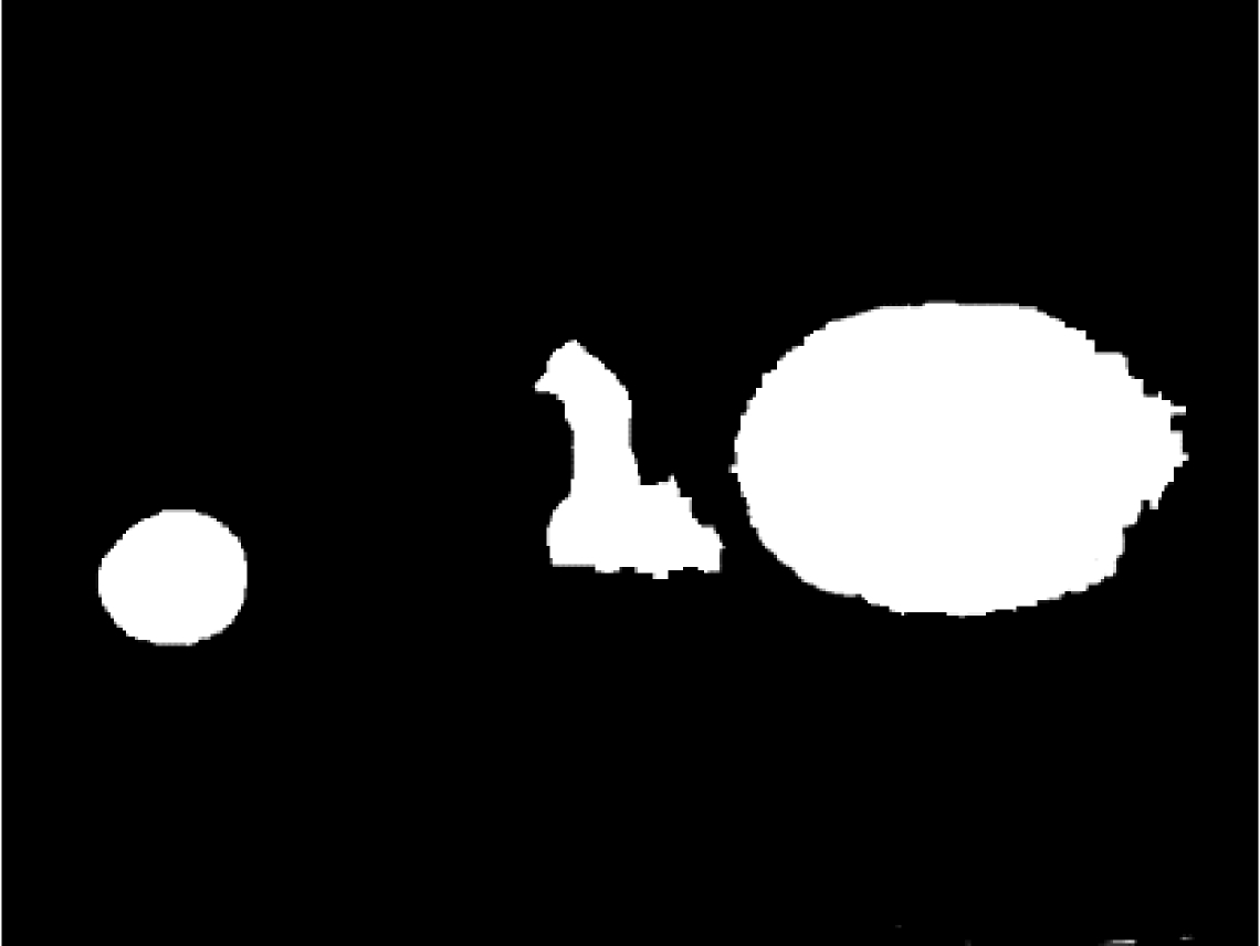 使用双目摄像机进行图像采集,以左视图为例,首先对图像进行预处理,对采集到的原图进行阈值分割,得到二值化图像[10];然后进行腐蚀和膨胀处理,去除二值化图像中的一些噪声点;最后采用火焰尖角辨识方法,并用式(1)和式(2)计算图像中火焰、白炽灯、矩形台灯的圆形度、矩形度和尖角数量,根据圆形度、矩形度和尖角数量对图像进行火焰识别。火焰、白炽灯、矩形台灯图像及其面积和边缘提取如图3所示。