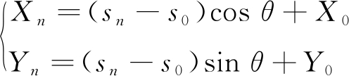 式中:(Xn,Yn)为电机车在第n个采样点处的坐标;θ为直线的倾斜角,θ=arctan k,k为直线斜率,可实际测量得到;R为曲线(近似圆)半径,可现场测量得到;ω为电机车转过的角度,ω=(sn-s0)/(2πR×360)。