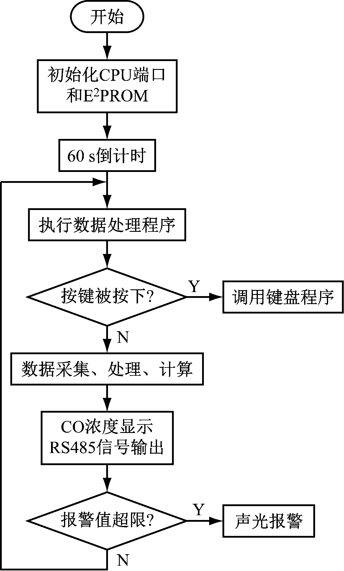 Fig.6 Flow of main program of mine-used infrared carbon monoxide sensor