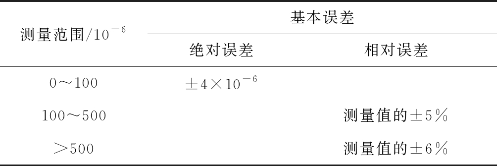 测量范围/10-6基本误差绝对误差相对误差0~100 ±4×10-6100~500测量值的±5%>500测量值的±6%