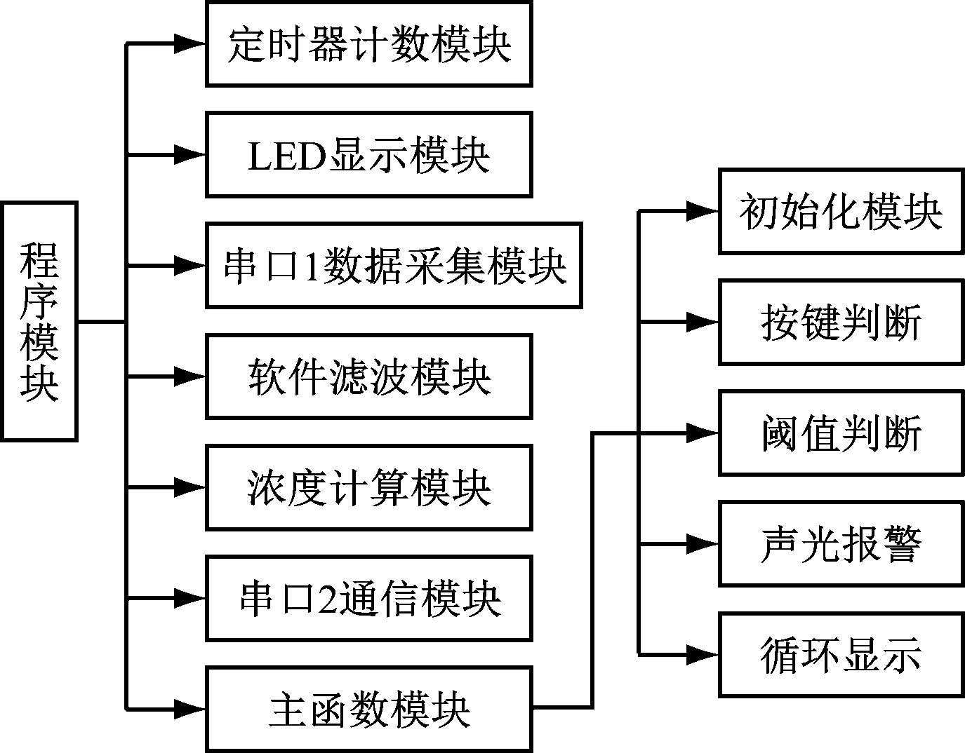 图5 矿用红外一氧化碳传感器软件功能模块
