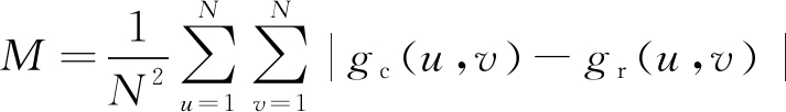 式中:M为平均绝对误差;N为图像块边长像素点数量;gc(u,v)为当前块中第u行、第v列处像素点灰度值;gr(u,v)为匹配块中第u行、第v列处像素点灰度值。