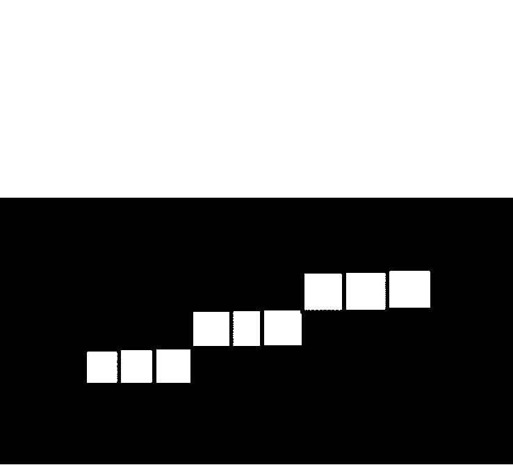由于图像中左侧区域存在多种颜色的管道,特征相对明显,为减少计算量,只计算左侧区域的块运动轨迹直线,结果如图5所示。根据每条运动轨迹直线的起点和终点生成运动轨迹所在直线方程。