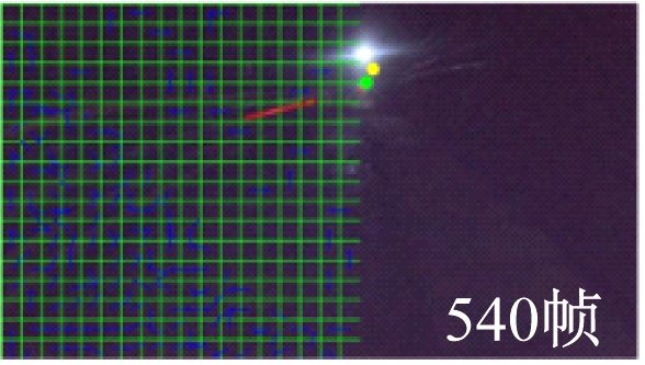 为减少计算量,本文采用三步搜索法(Three-Step Search,TSS)[20]求出图像的块运动轨迹直线:第1步,以匹配块当前位置为中心,按间隔为4的距离,搜索上下左右及斜对角 8个点;第2步,以第1步搜索结果中最接近点为中心,间隔减半搜索上下左右及斜对角8个点;第3步,重复第2步,将间隔再减半,当间隔为1时找到的最相似点就是匹配误差最小点。