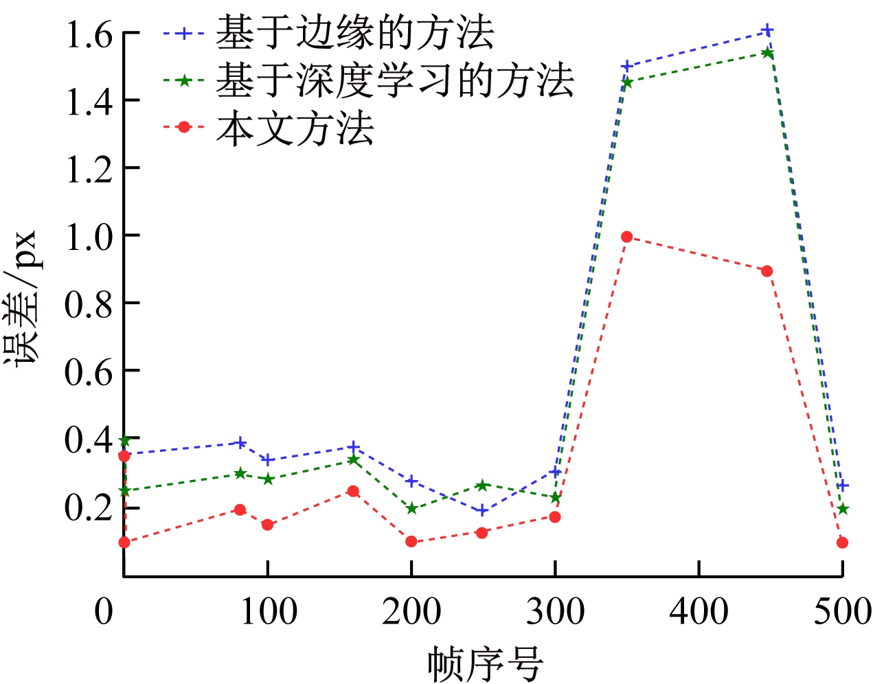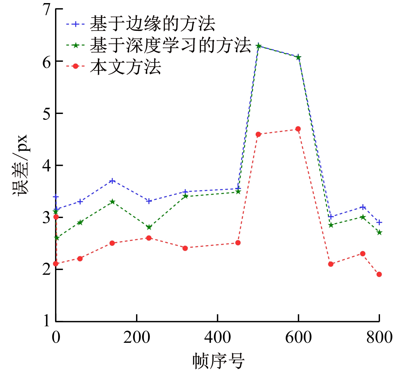 图8 不同灭点检测方法误差对比曲线