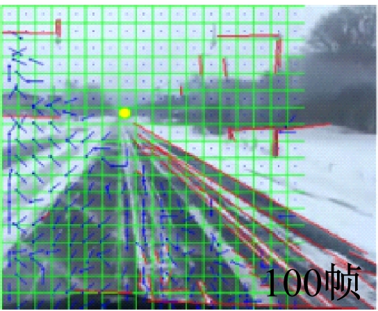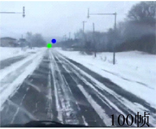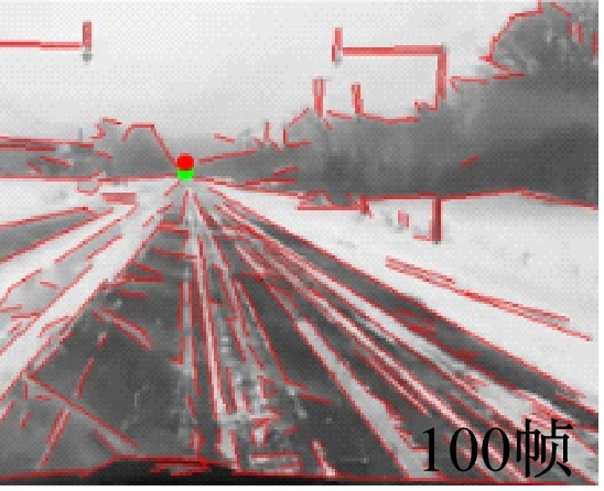 实验2 公共数据集由行车记录仪的部分视频组成,包括雪地、白天、夜晚3个不同场景。公共数据集中图像分辨率为335×270,帧数为500,由人工标记出每张图像的真实灭点位置。