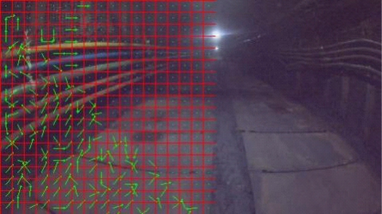本文提出了一种矿井巷道复杂场景灭点检测方法。该方法引入直线长度阈值和平均梯度约束剔除场景中的干扰直线;采用块匹配算法生成连续图像的块运动轨迹直线,丰富场景中的结构化信息;在灭点回归估计过程中加入局部异常点分析,提高灭点检测精度。