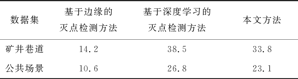 数据集基于边缘的灭点检测方法基于深度学习的灭点检测方法本文方法矿井巷道14.238.533.8公共场景10.626.823.1