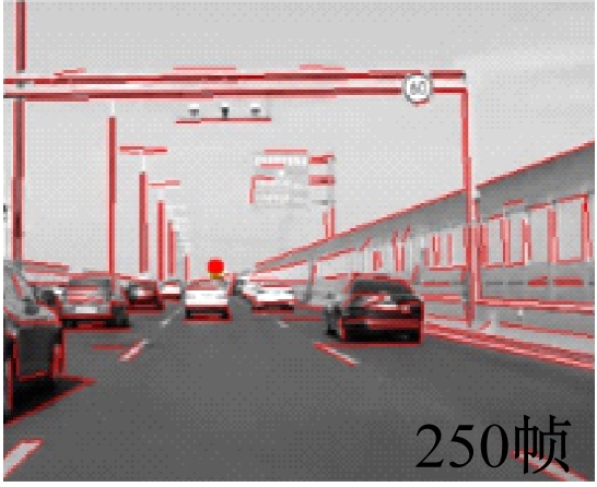 假设由本文方法检测到的灭点坐标为(w,h),人工标记的灭点坐标为(w0,h0),则灭点检测误差为