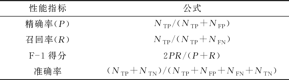 表3 混淆矩阵性能指标计算公式