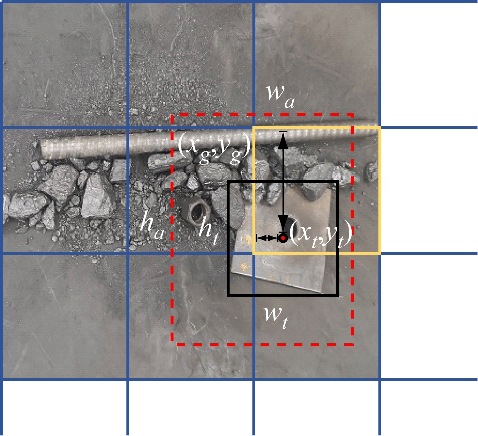 式中:σ(·)为sigmoid激活函数;(xt,yt)为边界框中心点实际坐标;(xg,yg)为网格左上角坐标;wt,ht分别为边界框实际宽度和高度;wa,ha分别为锚框宽度与高度。