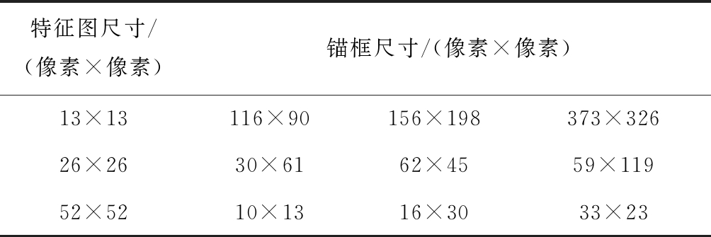 表1 锚框与特征图尺寸对应关系