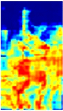 在特征空间中,特征粒度越小,细节特征越明显,而具有较高分辨率的特征图往往会带来更加丰富的细粒度特征。对于输入大小为256×128的图像(图4(a)),当骨干网络中Conv5层下采样步长为2时,输出大小为8×4的特征图(图4(b));当步长为1时,输出大小为16×8的特征图(图4(c)),较图4(b)包含更多的像素,提供更多的细粒度特征。因此,将Conv5层下采样步长设置为1。