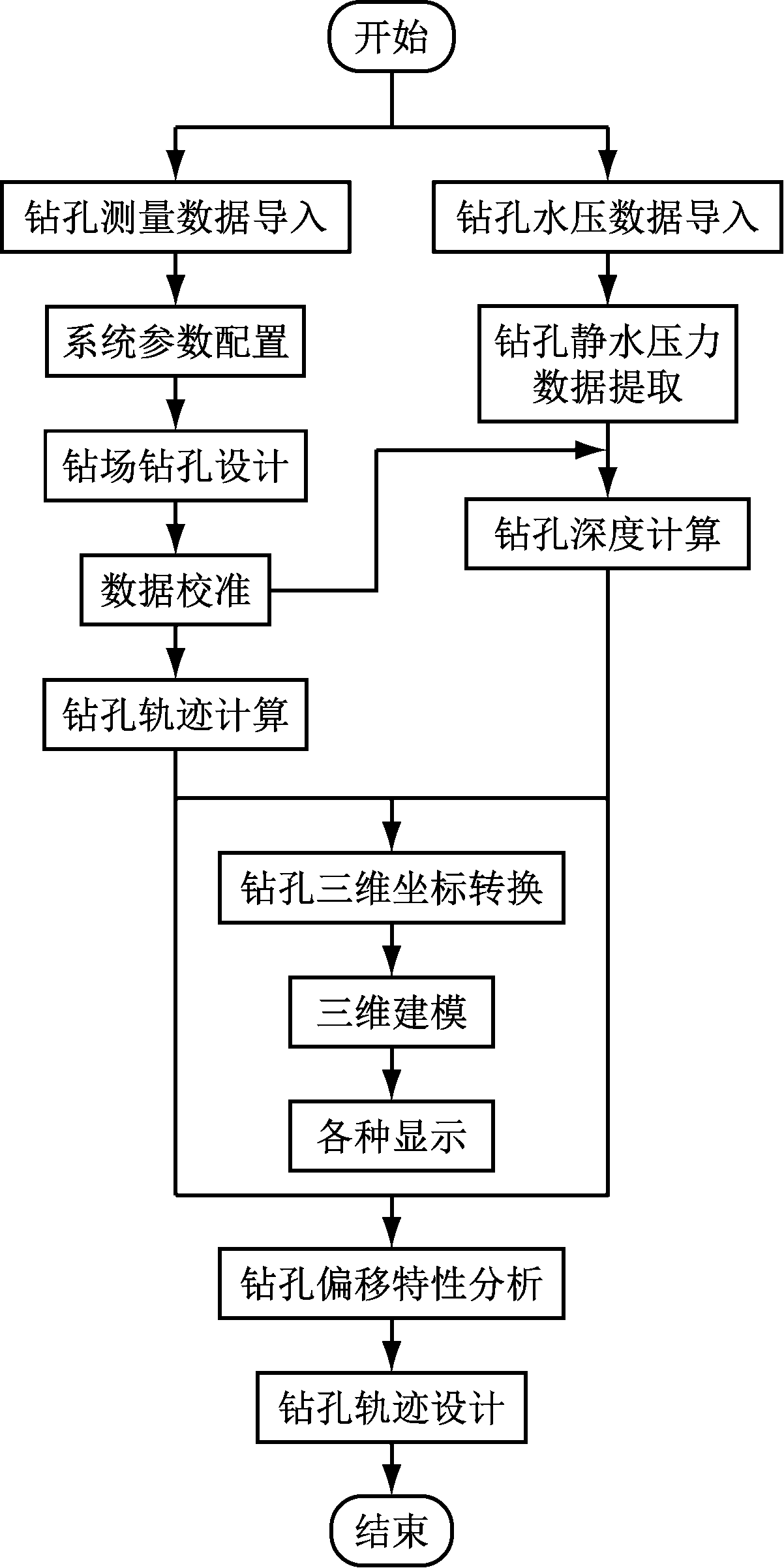 图6 钻孔轨迹数据处理与三维显示软件数据处理流程