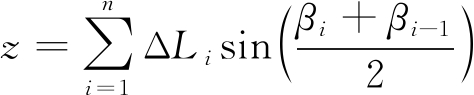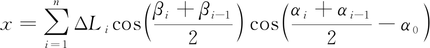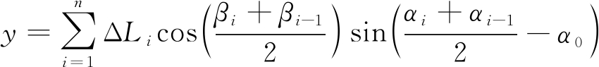 式中:ΔLi为第i个测点与i-1个测点之间的距离,i=1,2,…,n,n为测点个数;βi为第i个测点的倾角;αi为第i个测点的方位角;α0为钻孔主设计方位角。