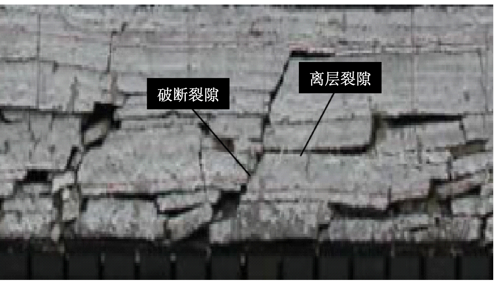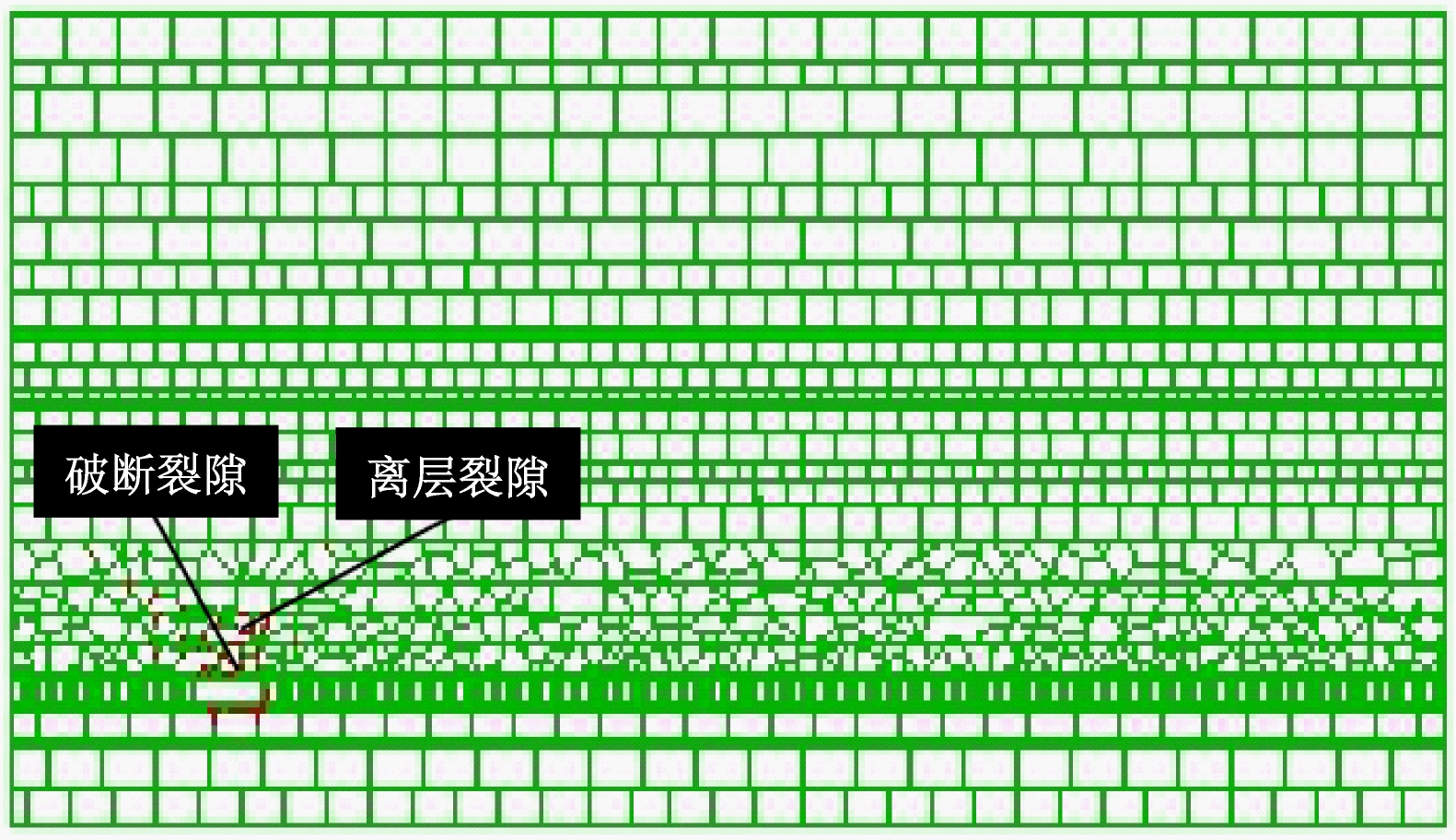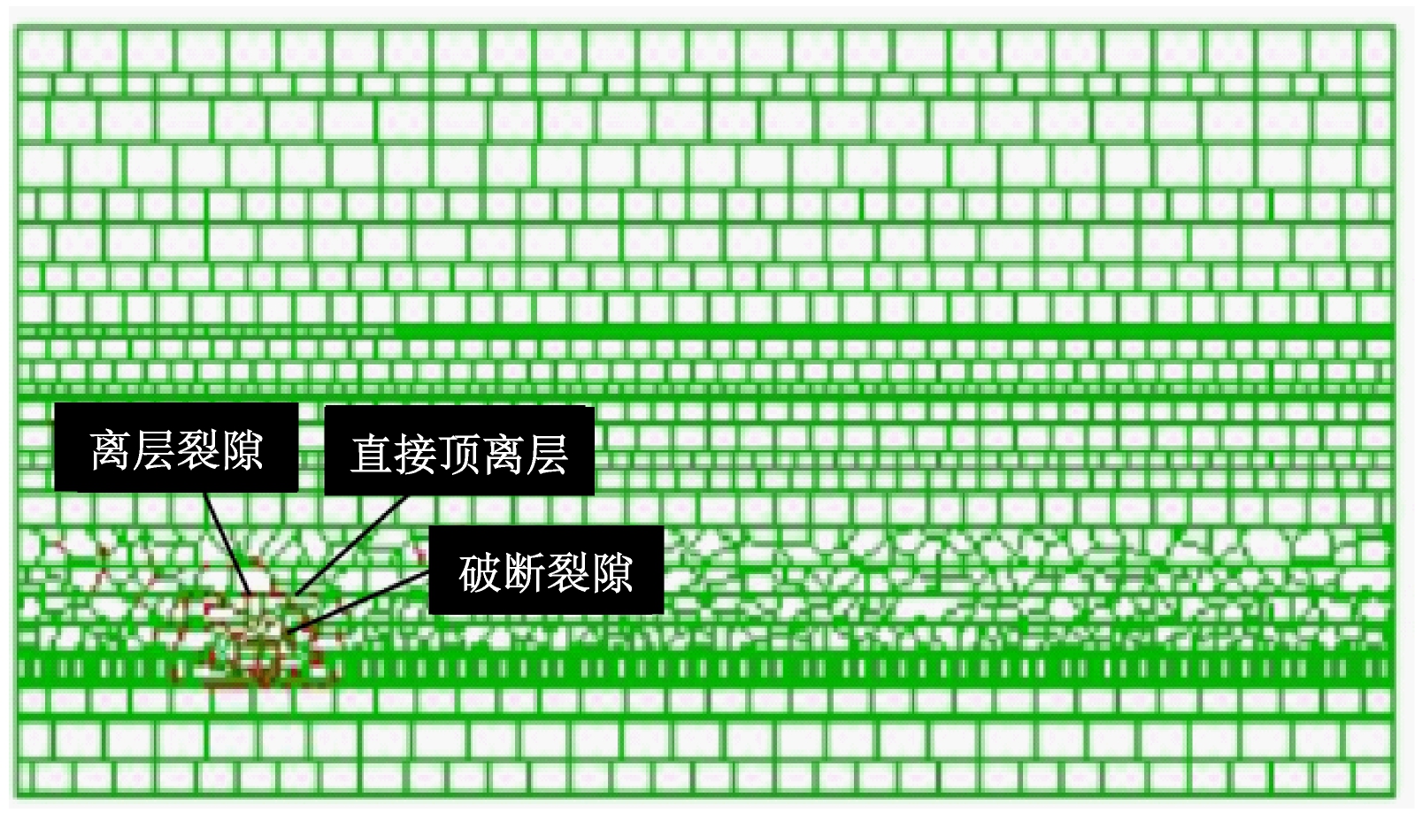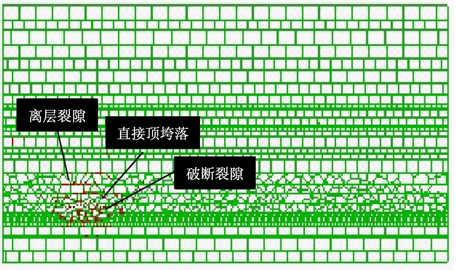 Fig.3 Simulation of overburden structure and fracture evolution during initial mining period