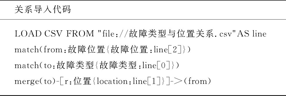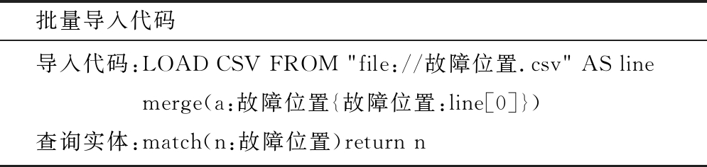 (2) 批量导入。故障位置数量超过了10个,因此本文采用批量导入的方式。首先需要创建1个csv文件并将其放在Neo4j数据库文件夹的import目录下,将所有的故障位置实体排成1列,编码模式为utf-8。批量导入的Cypher语句如下。