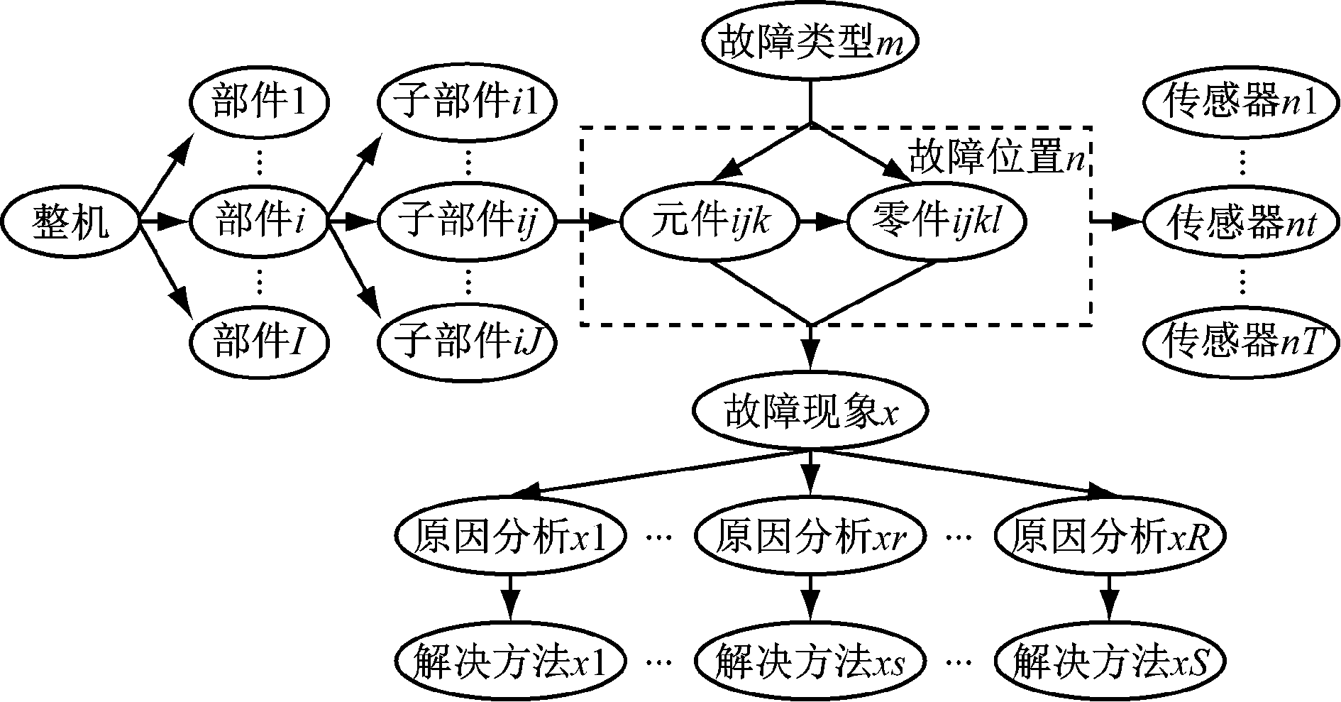 采煤机故障涉及的因素众多,如人、机械、环境等[7]。实现快速准确故障定位的基础是从系统的角度梳理影响采煤机运行状态的因素,采用图示化方式描述各因素间的关联关系,并分析各因素在故障产生中的耦合关系与异常传导机制,最后通过构建采煤机智能维护知识图谱实现故障检修知识的固化与持续迭代。