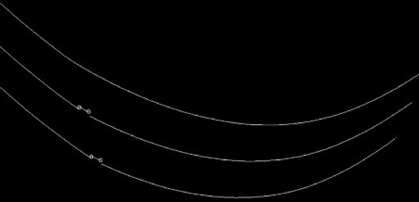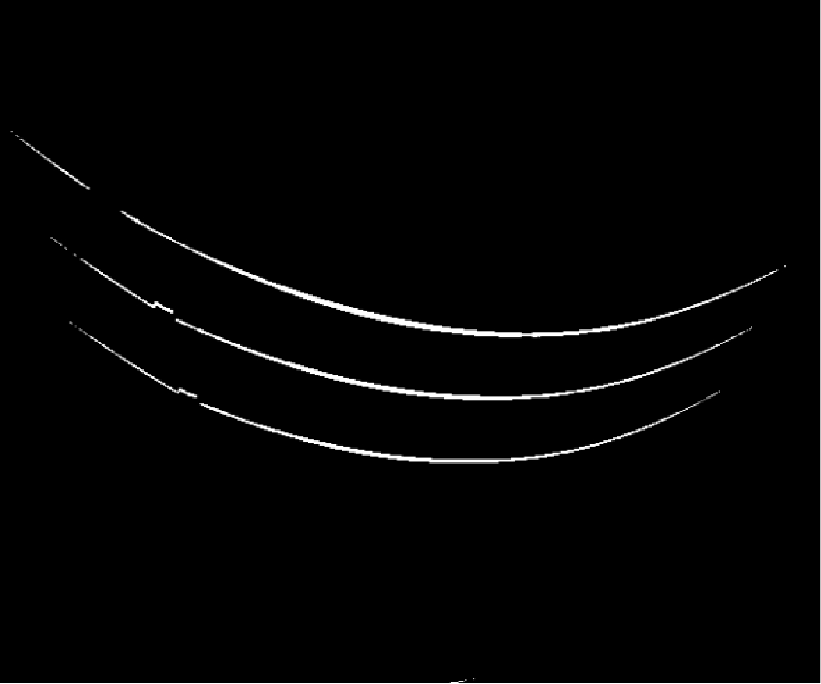 输送带完整时,线性光条形成多条近乎完整的光滑曲线,当检测到撕裂损伤时,曲线出现畸变或断裂,如图3所示。畸变或断裂点处离散导数会出现较大的跳变。利用该特性可检测线性光条中心线上的损伤边界点。