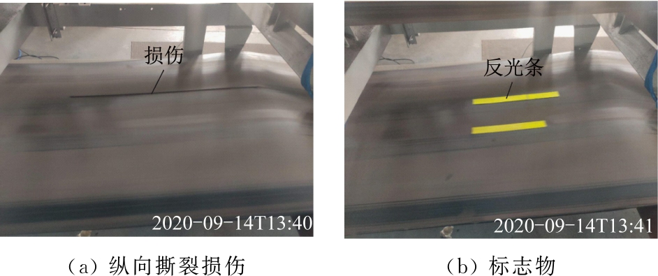 (2) 为便于跟踪输送带纵向撕裂损伤变化趋势,在输送带表面人为粘贴反光条作为标志物,以定位损伤纵向位置,并将该位置作为判断损伤变化的唯一标志。该方法工程施工难度低,能够实时检测并跟踪输送带纵向撕裂损伤趋势,为带式输送机检修提供了有效依据。