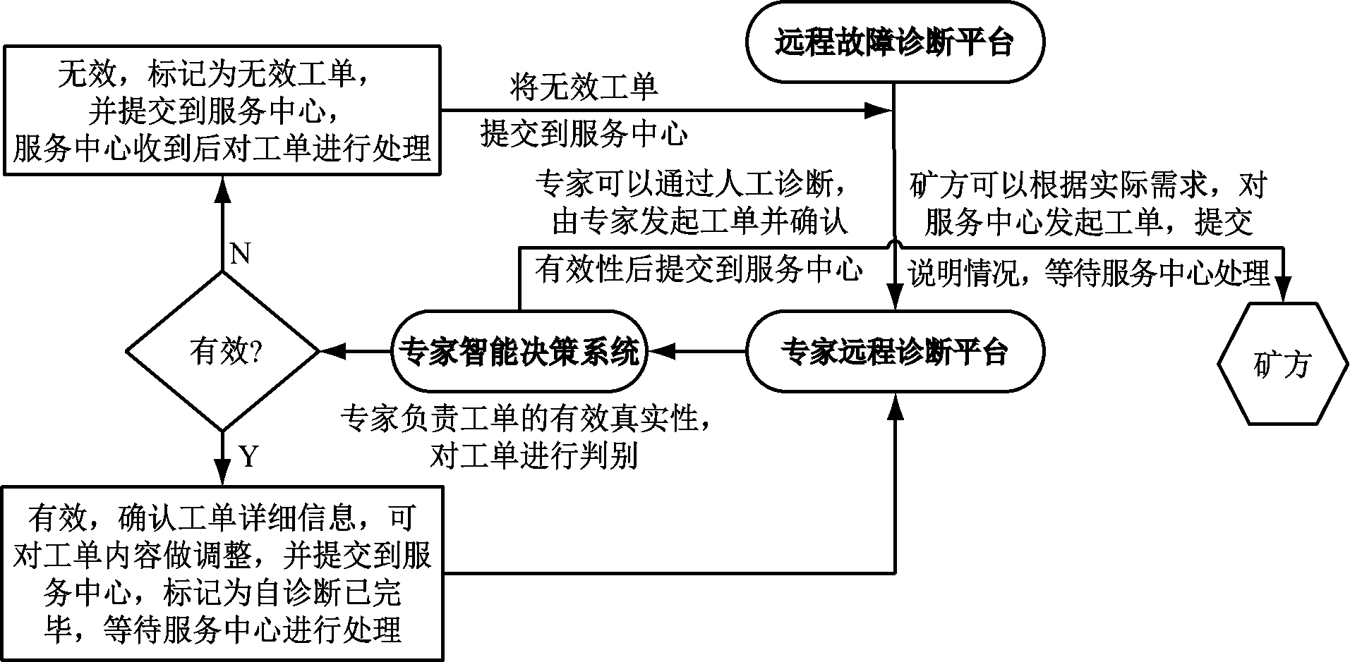 在煤矿智能化的大背景下,煤矿设备远程故障诊断已经成为研究热点。马昆[2]研究了综采工作面“三机”故障诊断系统与信息化控制技术,并将其应用到宁夏煤业枣全煤矿,实现了地面对 “三机”运行工况的监测与诊断。朱亚坤等[3]基于LabView软件研发了由振动传感器、温度传感器、监测子站、监测分站和监测主站组成的选煤厂大型设备状态监测与故障诊断系统,有效保证了设备的安全运行。覃缓贵[4]设计了矿用离心通风机故障诊断在线监测系统,该系统采用以太网通信模块将监测的信息远程传输至监测上位机,并根据诊断算法实现了矿用离心通风机的在线故障诊断。针对主运煤流线协同控制系统存在维护困难的问题,孔维社[5]开发了一种主运煤流线协同控制系统远程故障诊断模块,由地面集控室工程师或装备制造企业研发人员分析并确认故障原因,并通知巡检人员排除故障。张大伟等[6]结合流媒体互联网技术与设备管理技术,研发了带式输送机远程视频辅助维修系统,实现了带式输送机的远程辅助维修和信息化管理。张强等[7]为了实现对刮板输送机运行过程中的各项运行参数的实时在线监测及故障诊断,以组态软件King20View为上位机开发平台,开发了刮板输送机远程动态监测及故障诊断系统。石瑞敏等[8]结合工况监测与故障诊断技术,构建了现场总线、企业Intranet与远程Internet融合的提升设备管理系统,有效降低了设备故障率和提高了设备管理工作效率。王保德[9]针对现有提升机监测系统仅限于现场就地监测,部分故障很难被及时发现并处理的问题,设计了基于物联网的提升机群远程监测与智能故障诊断系统,提高了故障诊断效率。杨一晴等[10]针对现有煤矿机械在线监测与诊断技术未实现故障特征在线提取及故障类型自动识别的问题,设计了一种基于LabVIEW的煤矿旋转机械故障在线诊断及预警系统。高文[11]针对煤矿监控类系统故障处理时效性低、现场维护工作量大、运维成本高等问题,设计了一种煤矿监控类系统远程故障分析平台。雷志鹏等[12]针对现有工作面输送设备监测与诊断系统只能在井下现场使用的问题,设计了一种基于LabVIEW的安装于地面调度中心的输送设备远程监测与诊断系统。张旭辉等[13]针对矿用设备现场维修知识和专业指导不足导致维修效率低、周期长等问题,设计了一种基于混合现实的矿用设备维修指导系统,实现了矿用设备专家远程指导维护。