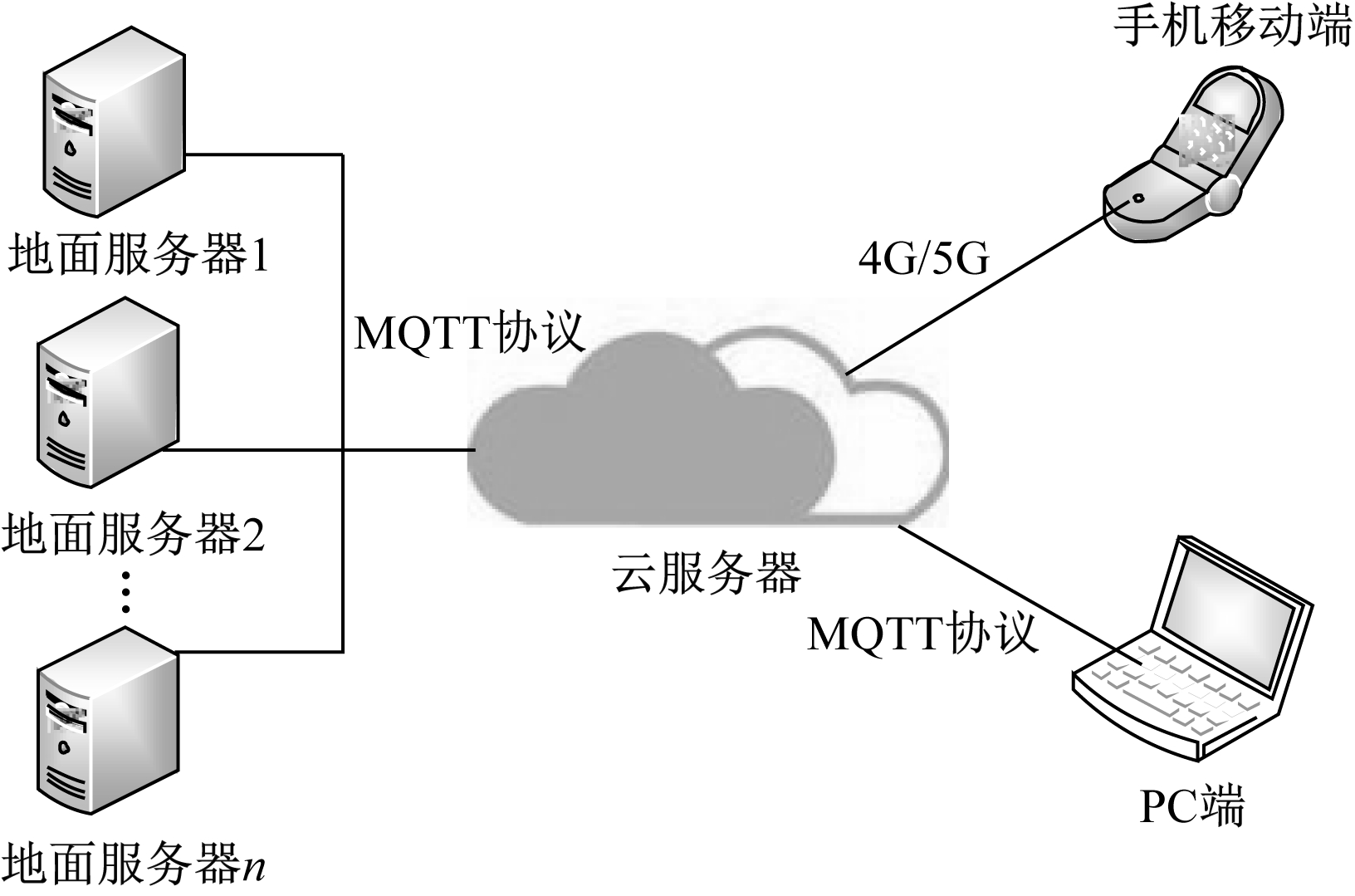通过煤矿井下10 000 Mbit/s环网将综采设备群状态监测数据高效传输到地面服务器,并利用MQTT协议将地面服务器的综采设备群状态监测信息可靠传输至云服务器,云服务器通过MQTT协议与PC端进行数据可靠传输,手机移动端通过4G/5G进行数据高效传输,如图2所示。