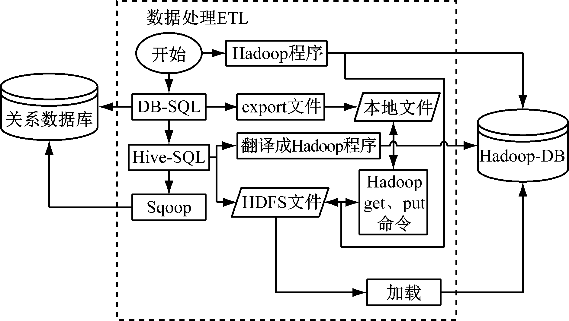 基于云平台的综采设备群远程故障诊断系统建立了单独的数据存储服务器,将采集到的综采设备群运行信息进行统一存储。应用Hadoop的数据仓库Hive对分布式文件系统(Hadoop Distributed File System,HDFS)内数据按照不同的综采设备运行信息进行分类存储,如图3所示。数据经过Sqoop(数据迁移工具)处理后按照设备、数据类型、时间节点进行分类,并存储到HDFS。该数据存储技术不仅可以提高数据查询能力,而且可对数据仓库进行动态在线扩容,并可对关键数据进行二次备份和物理留存历史数据,确保综采设备群监测数据的完整性和一致性。