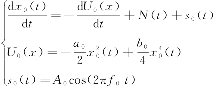 式中:x0(t)为经典随机共振系统的输出响应;U0(x)为双稳态系统势函数;a0>0, b0>0,为系统参数;N(t)为高斯白噪声,