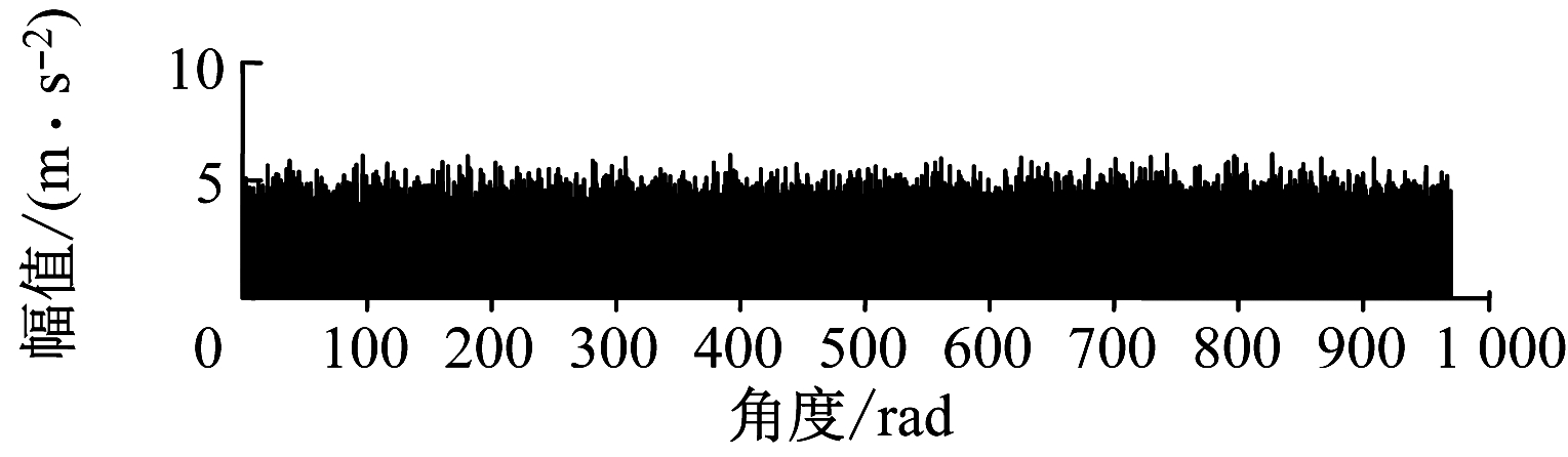 矿井提升设备的典型运行规律可简化为提升速度线性上升→平稳→线性下降[3],在这种运行工况下构建相应的轴承外圈故障仿真信号。结合文献[15]提出的变转速工况下的轴承仿真信号公式进行仿真分析。