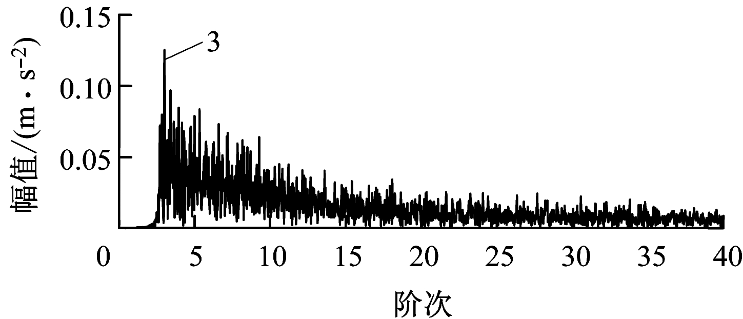 由式(2)可知,轴承不同类型的故障阶次与轴承的转速、工况无关,只与轴承的固有参数有关,通过计算阶次分析可以得到不受转速变化影响的、反映轴承故障特征的阶次信号。