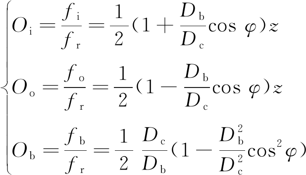 式中:Oi, Oo, Ob分别为轴承内圈、外圈、滚动体故障阶次;fi, fo, fb分别为轴承内圈、外圈、滚动体故障频率;Db为滚动体直径;Dc为轴承节径;φ为接触角; z为滚动体个数。