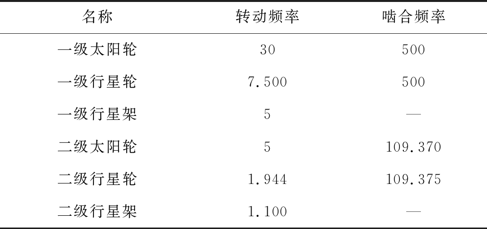 试验台两级行星齿轮传动系统的主要零件转动频率和啮合频率见表1。二级太阳轮裂纹故障特征频率为15.6 Hz。