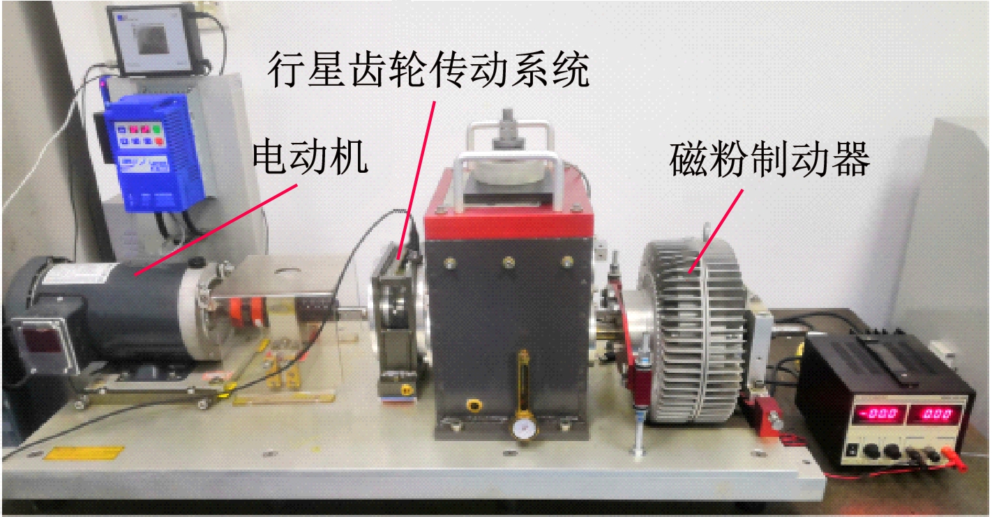 采用动力传动故障诊断综合试验台(图10)的行星齿轮传动系统模拟变速工况下采煤机牵引部行星齿轮传动系统进行故障特征提取试验。该试验台行星齿轮传动系统中的二级太阳轮存在裂纹故障,通过上位机设置电动机转速为0~1 800 r/min,转矩为5 N·m。在第二级行星齿轮传动系统的径向安装加速度传感器,其灵敏度为103 mV/g,信号采样频率为10.24 kHz。