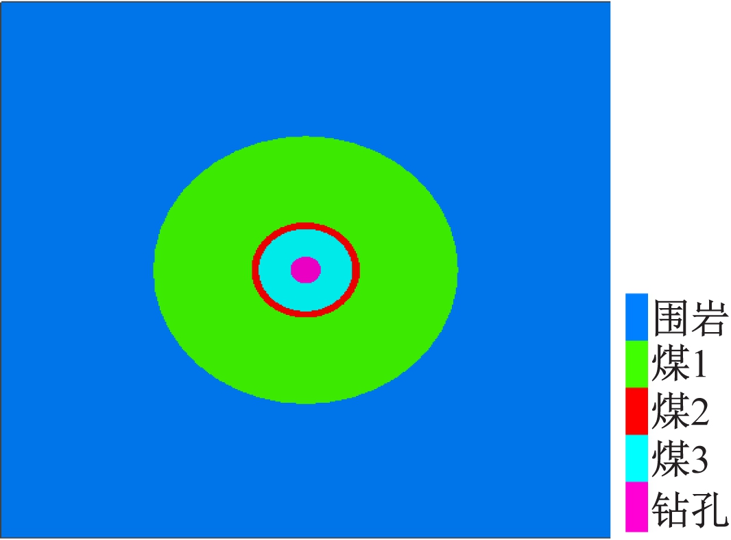 瓦斯有效抽采半径是煤矿瓦斯治理研究中的关键参数,决定着钻孔之间的布置间距。在模拟过程中,把煤层破裂区域半径当作有效抽采半径。即出煤量为4.5,6 m3的煤岩的理论有效抽采半径分别为4.5,4.8 m。