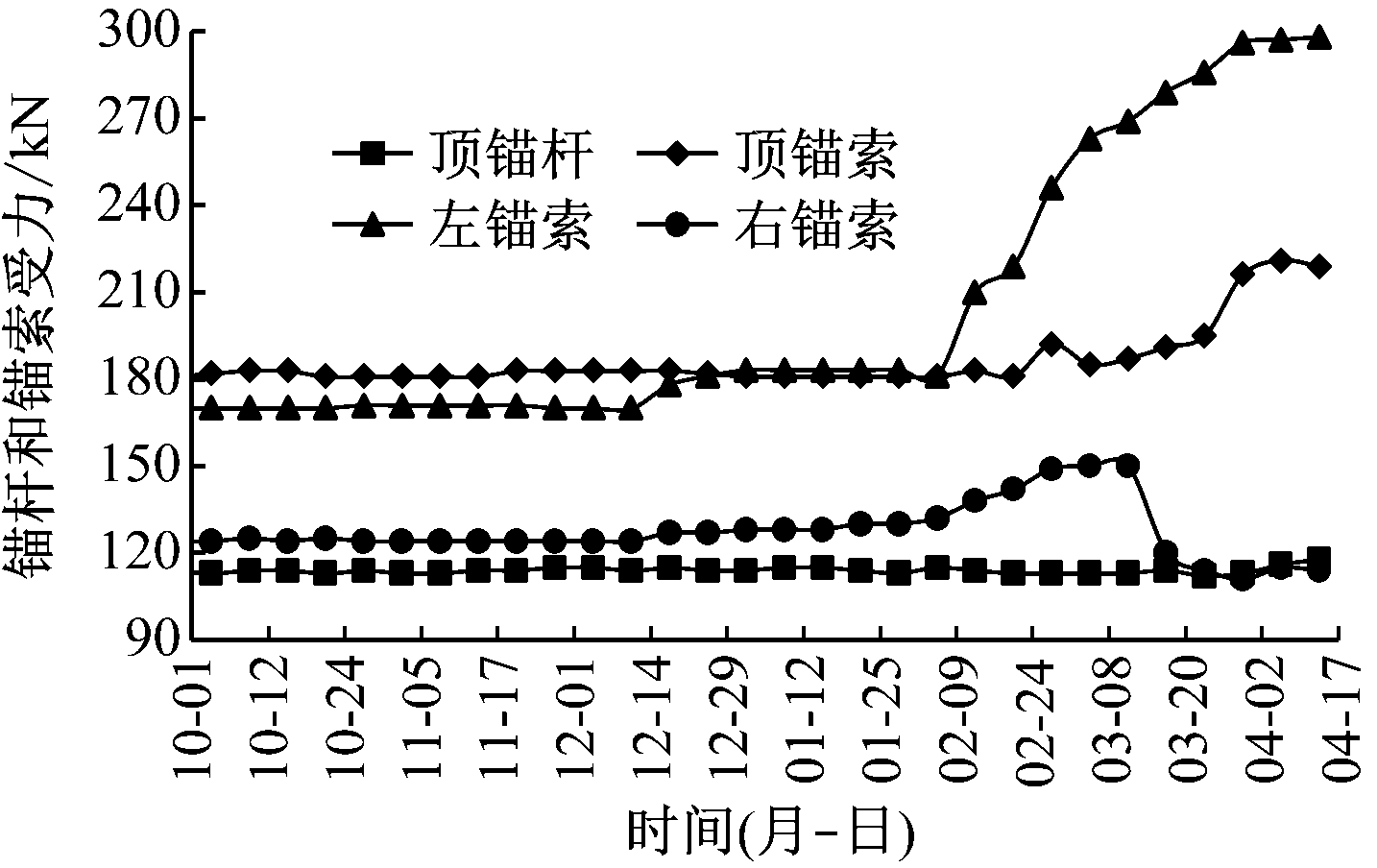 图8 锚杆和锚索受力情况