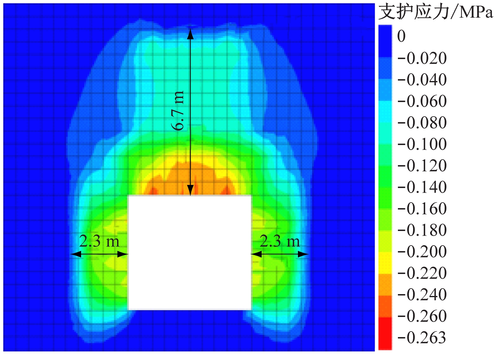 (b)优化参数支护应力场