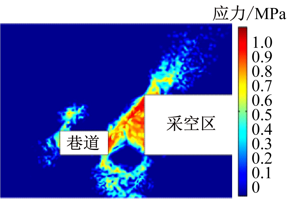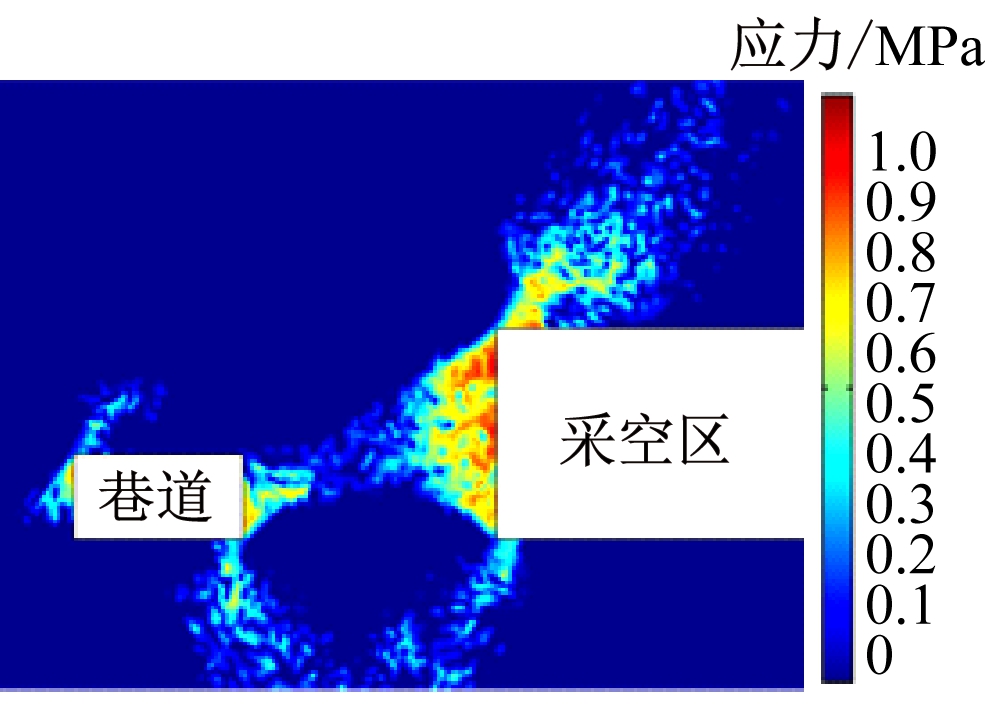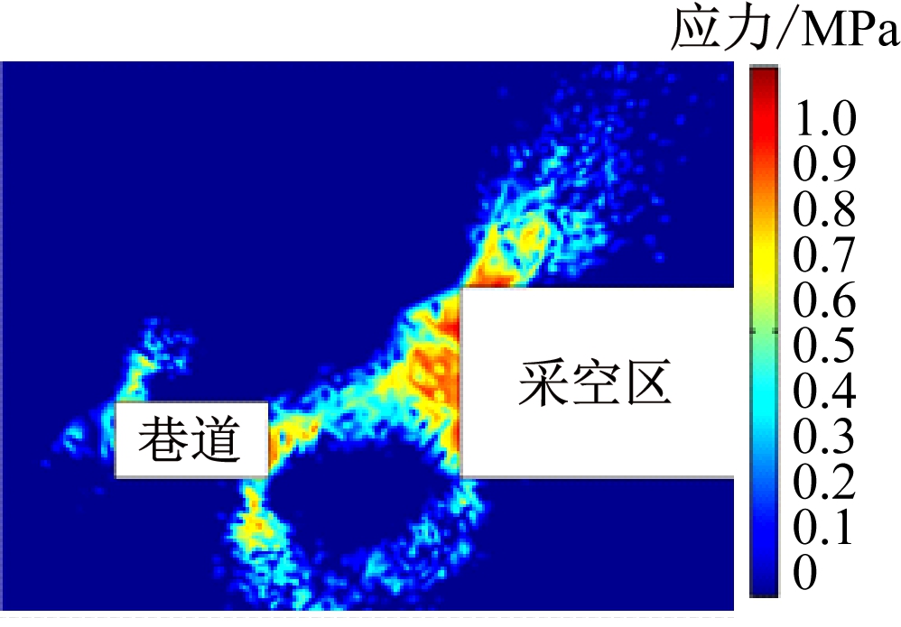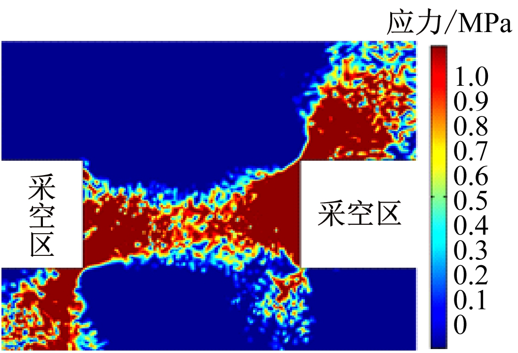 采用与RFPA程序类似的弹性损伤本构关系,以最大拉伸破坏准则和摩尔-库仑准则对岩石应力状态进行判定[18]。