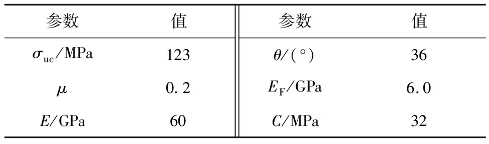 参数值参数值σuc/MPa123θ/(°)36μ0.2EF/GPa6.0E/GPa60C/MPa32