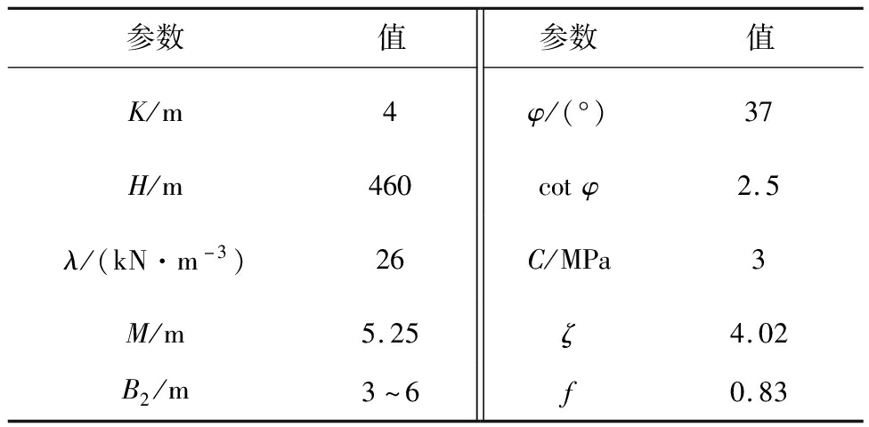 参数值参数值K/m4φ/(°)37H/m460cotφ2.5λ/(kN·m-3)26C/MPa3M/m5.25ζ4.02B2/m3~6f0.83
