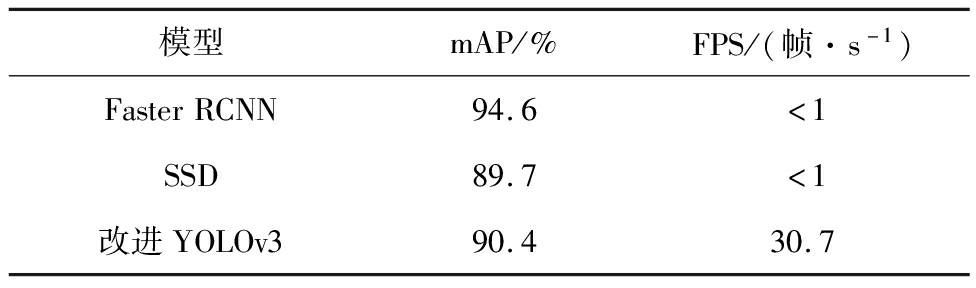 模型mAP/%FPS/(帧·s-1)FasterRCNN94.6<1SSD89.7<1改进YOLOv390.430.7