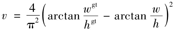 式中:LIoU为预测框和真实框之间的交并比损失函数;B,Bgt分别为预测框和真实框的面积;LCIoU为CIoU损失函数;ρ(b,bgt)为预测框中心点b和真实框中心点bgt之间的欧氏距离;C为同时包含预测框和真实框的闭合矩形对角线距离;α为平衡尺度权重参数;v为衡量预测框和真实框的长宽比相似性参数;wgt,hgt分别为真实框的宽和高;w,h分别为预测框的宽和高。