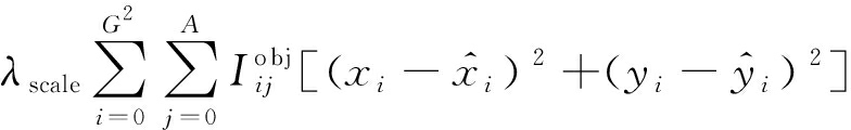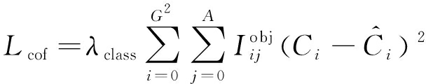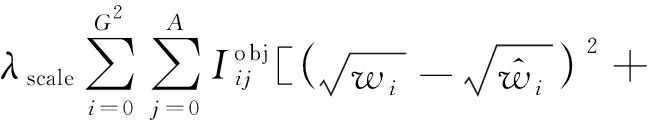 为目标落入第i(i=1,2,…,G,G为网格数量)个网格第j(j=1,2,…,A,A为每个网格的预测框数量)个预测框的系数;