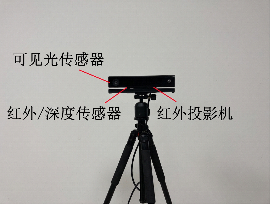 为获得足够多的煤矿井下环境数据,采用包含可见光传感器、深度传感器和红外传感器的Kinect摄像机(图1)。将Kinect摄像机中3个传感器安装在井下防爆无轨胶轮车车头,如图2所示。