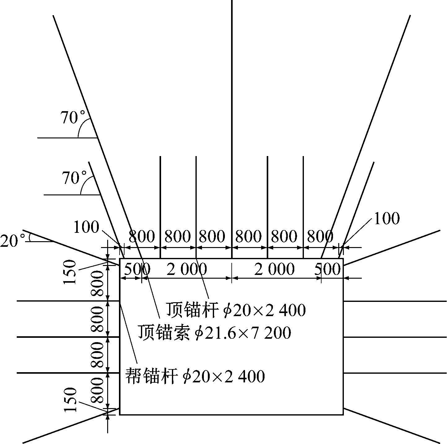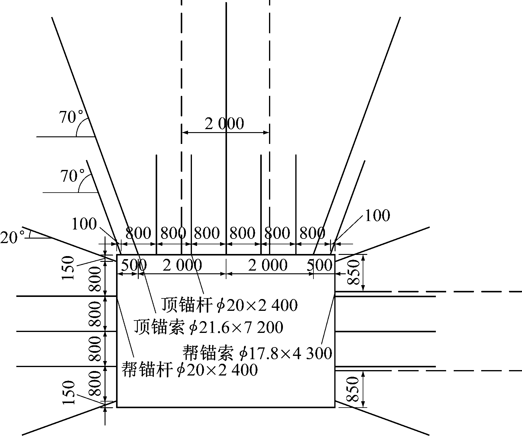 顶锚杆:与方案1加强支护方案相同。