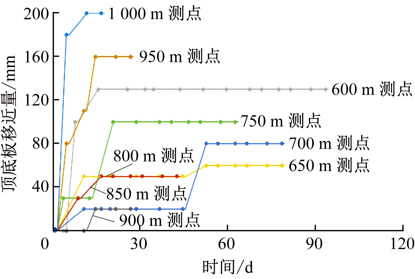 (a) 顶底板移近量
