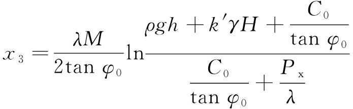 根据极限平衡区理论,塑性区(水破坏区)宽度为x3,计算公式[14]如下: